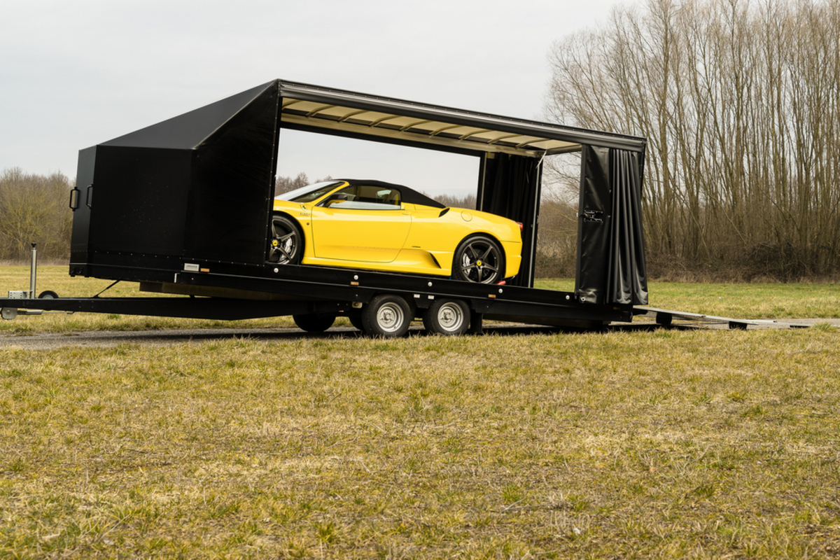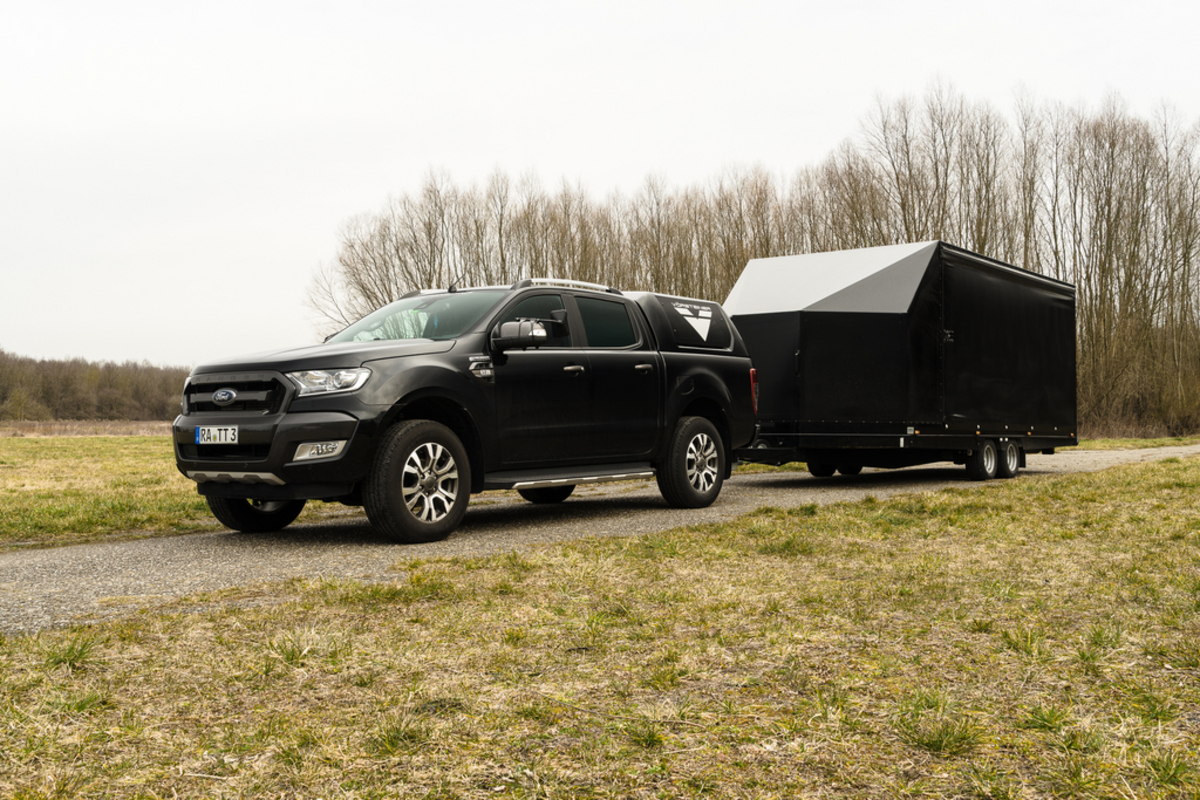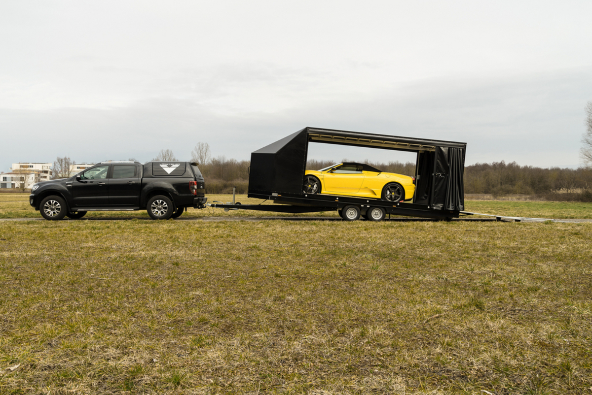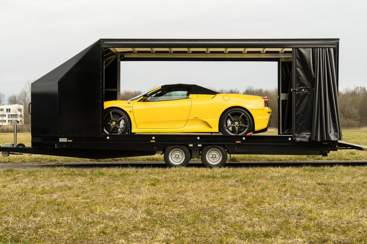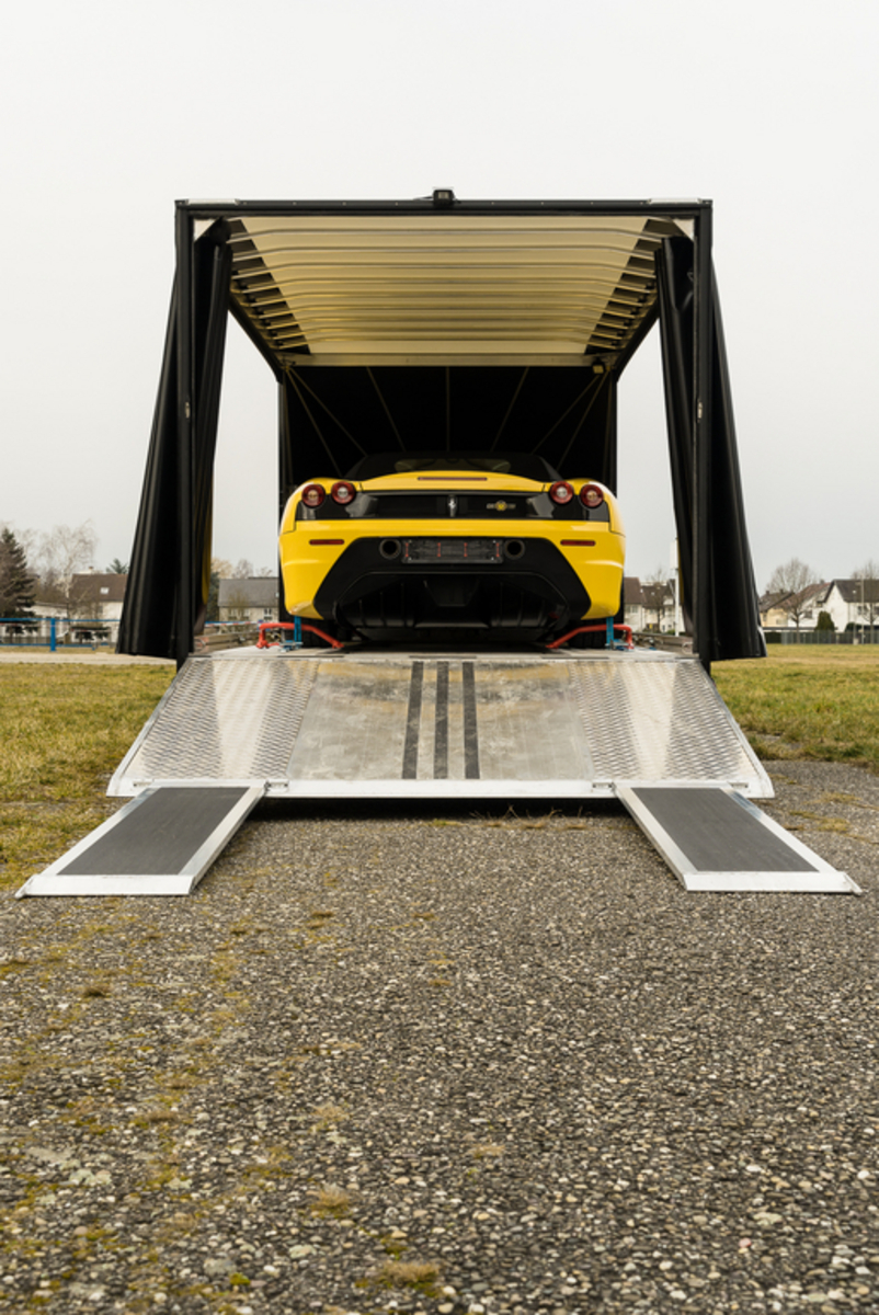 Unser geschlossener Fahrzeugtransporter mit festem Planenaufbau schütz Ihr Fahrzeug vor der Witterung und unerwünschten Blicken.