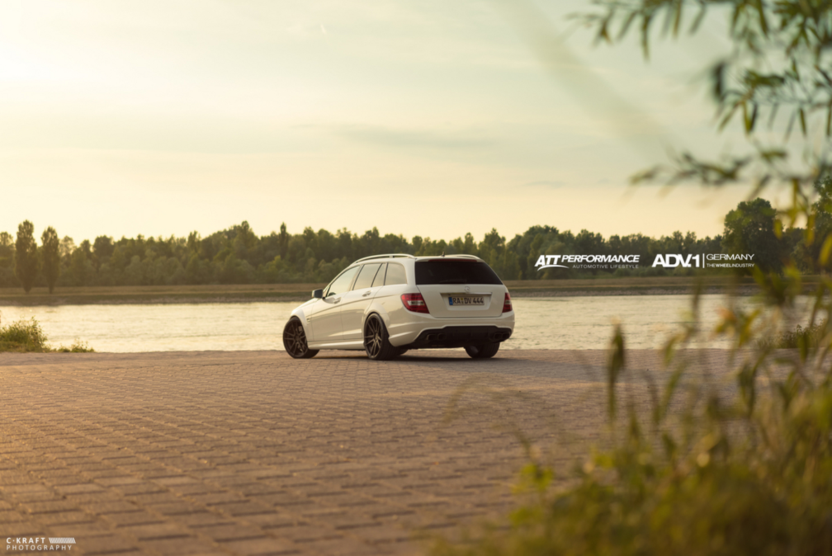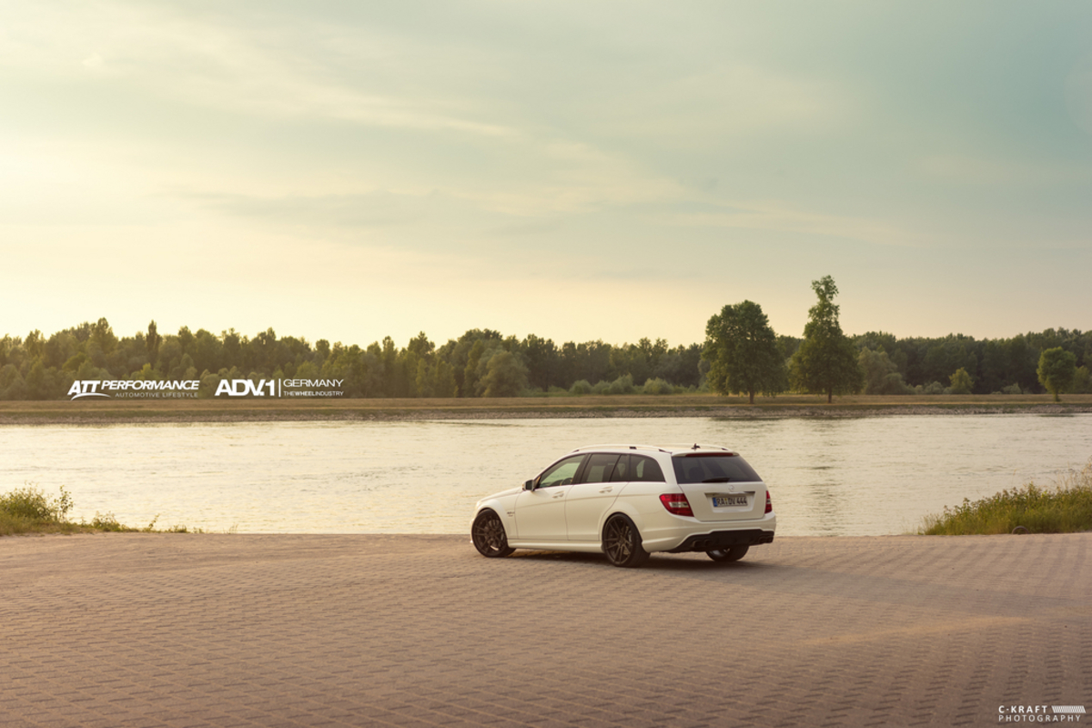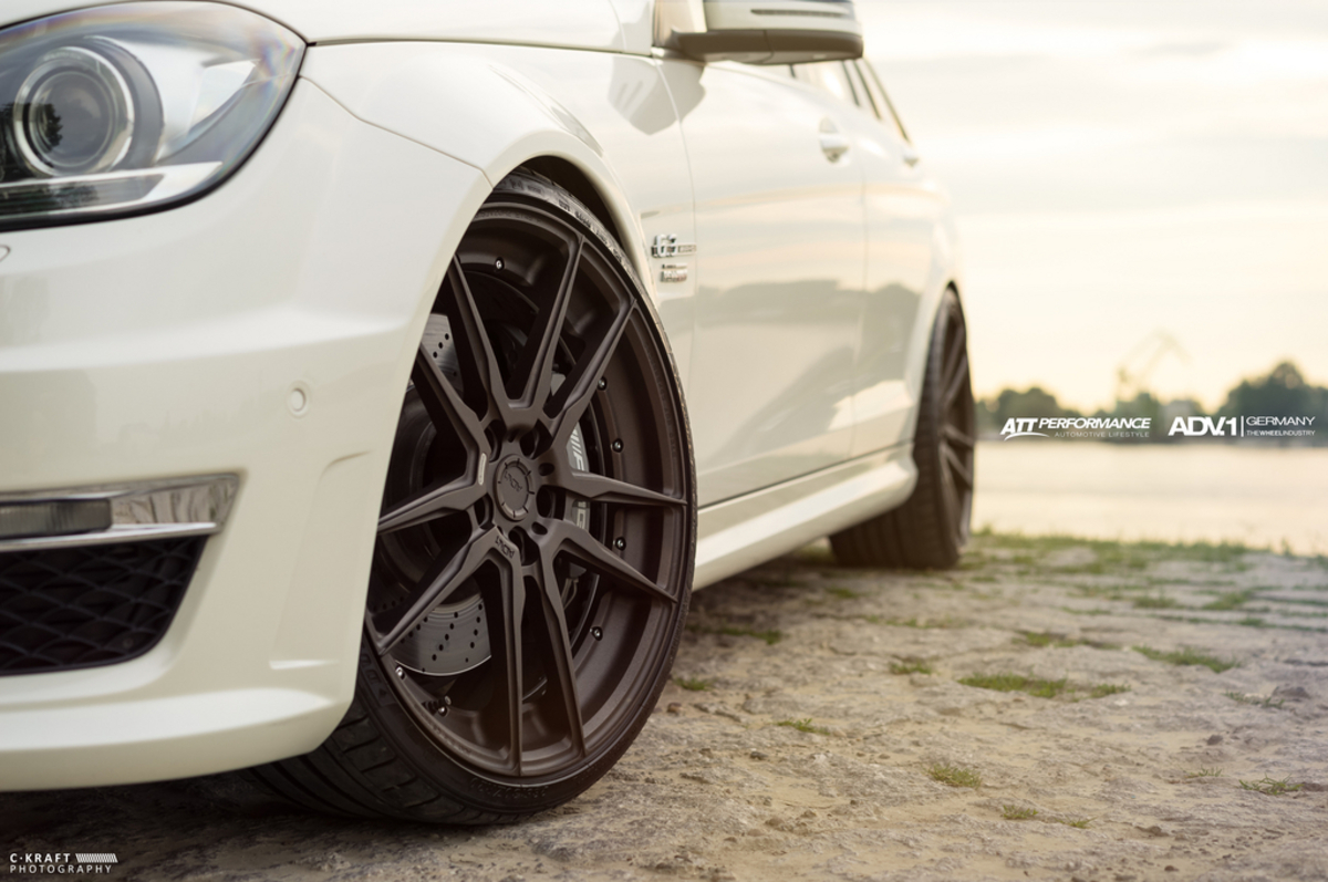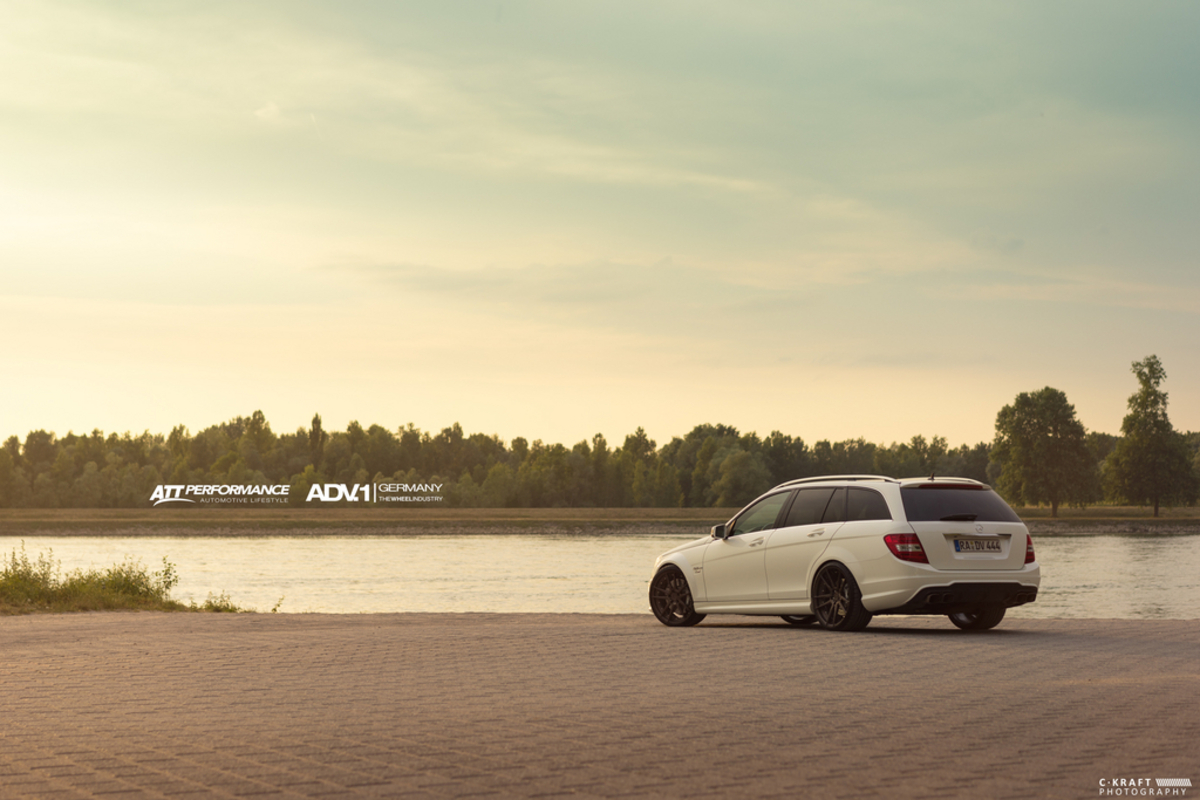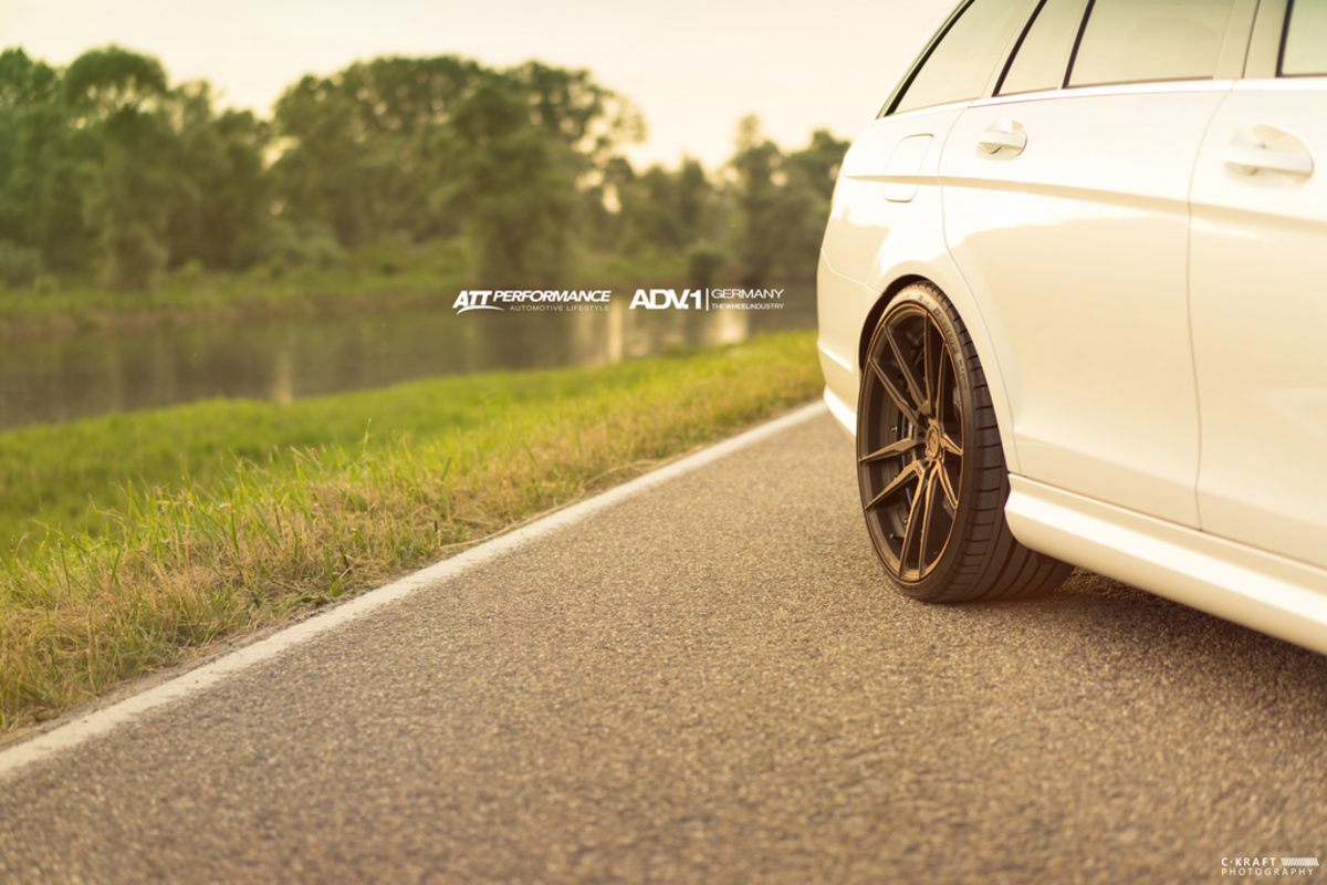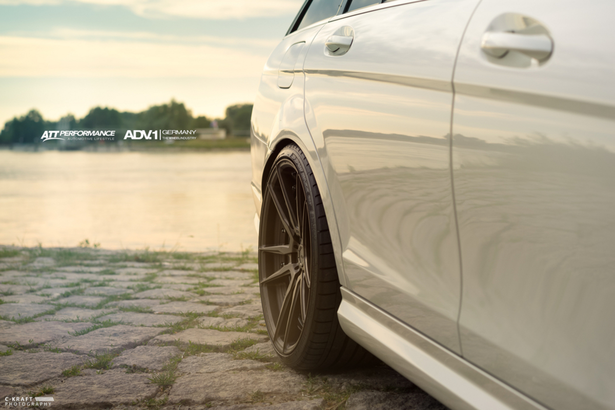 Fahrzeugbeschreibung MERCEDES C63 AMG Kombi Sonderumbauten Reifen und Felgen ADV5.2 M.V2 CS in 8,5x20“ und 10x20“ in Fine Texture Bronze | 50/50 Exposed Hardware Abgasanlagen Akrapovic Evolution Line Design & Aerodynamik KW-Gewindefahrwerk DDC