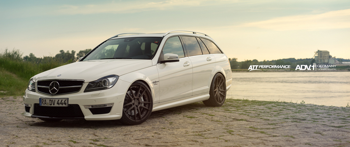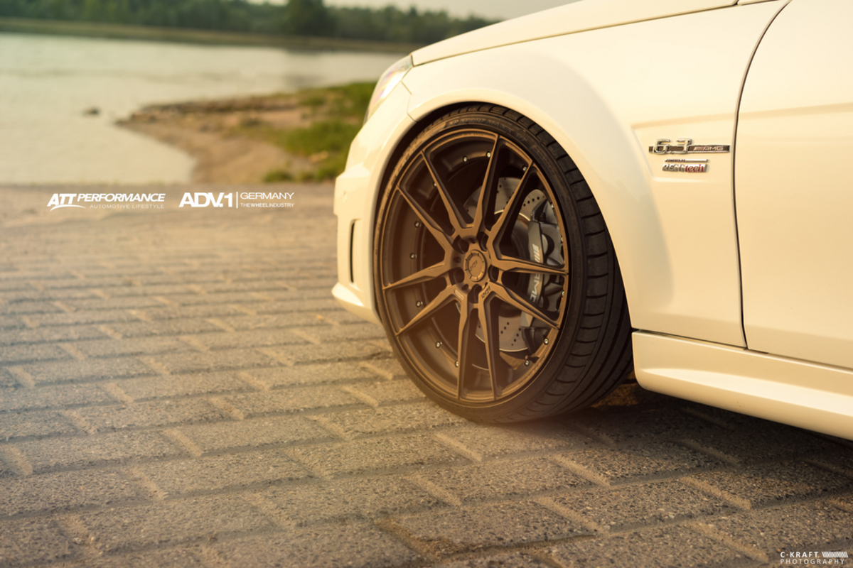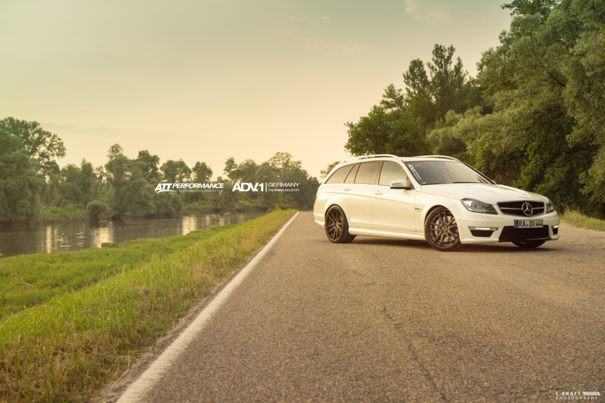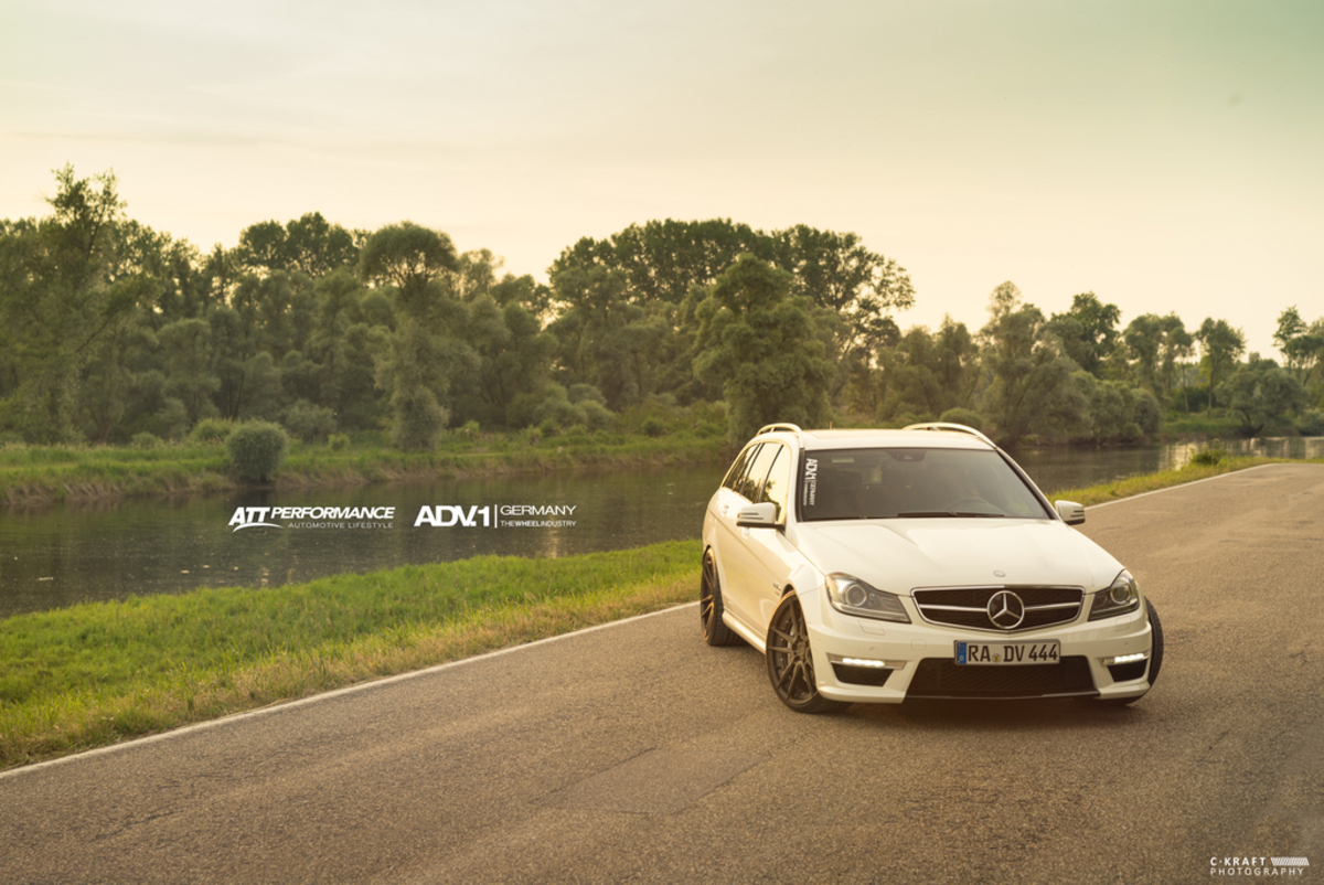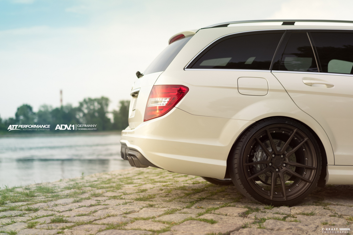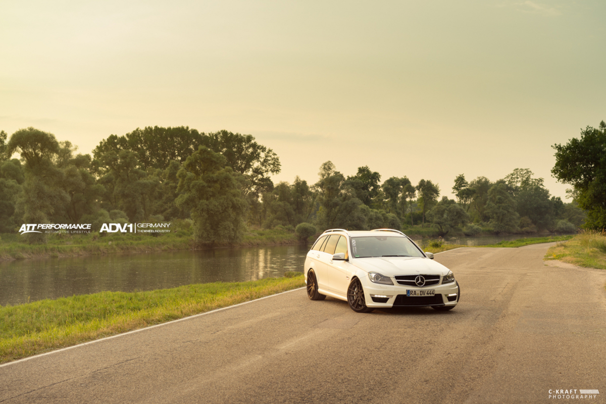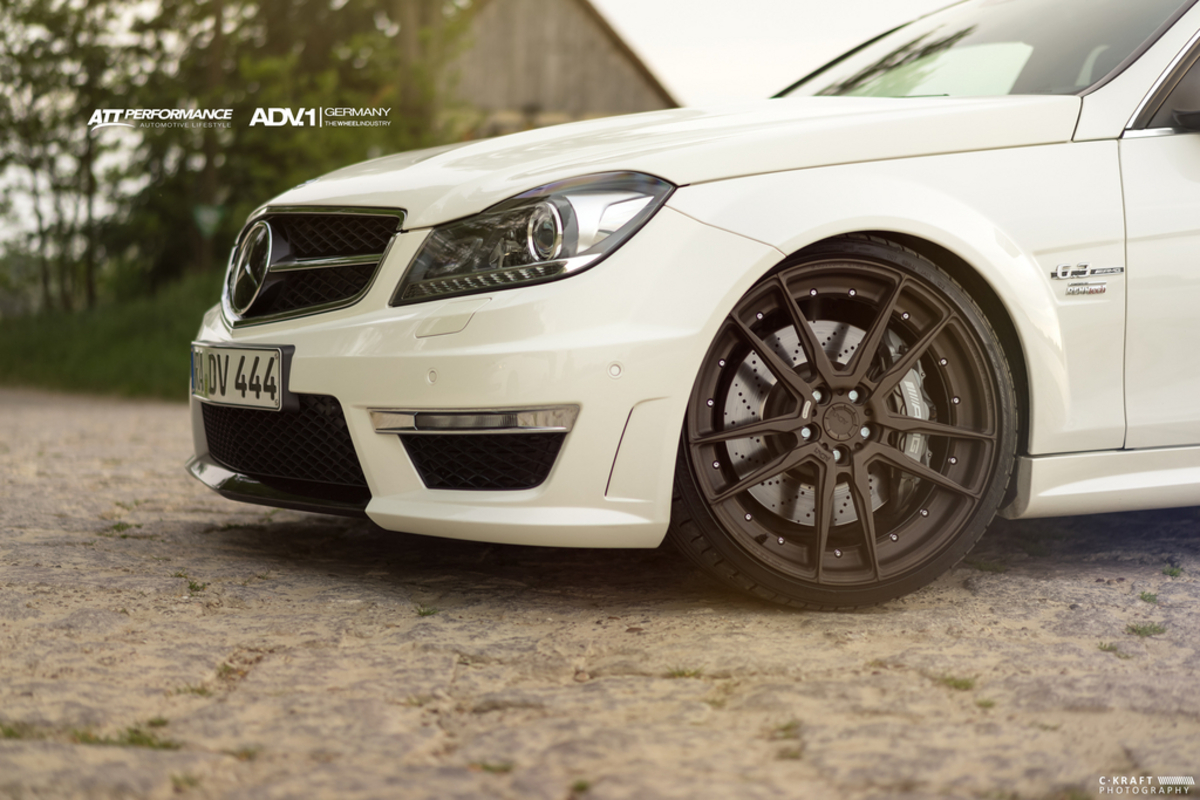Fahrzeugbeschreibung MERCEDES C63 AMG Kombi Sonderumbauten Reifen und Felgen ADV5.2 M.V2 CS in 8,5x20“ und 10x20“ in Fine Texture Bronze | 50/50 Exposed Hardware Abgasanlagen Akrapovic Evolution Line Design & Aerodynamik KW-Gewindefahrwerk DDC